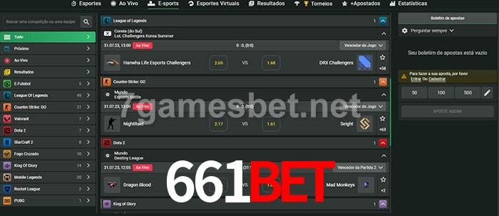 O 661bet oferece uma grande seleção de opções de apostas em e-sports com probabilidades competitivas